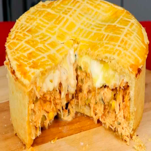 La cazuela de pollo es un plato tradicional de la cocina brasileña, conocido por su masa suave y su jugoso relleno de pollo desmenuzado con sabrosos condimentos.