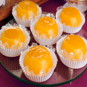 Quindim es un postre tradicional brasileño, conocido por su textura delicada, sabor dulce y color amarillo vibrante.